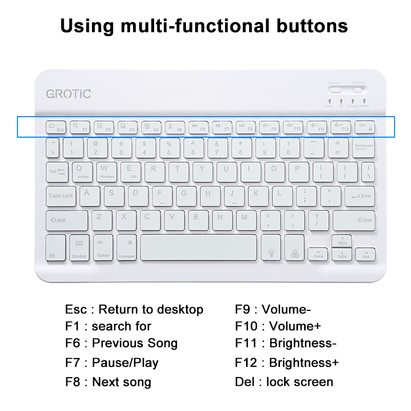 GROTIC Keyboard Mouse Wireless Bluetooth LED Backlight 10 inch Untuk Laptop & Tablet