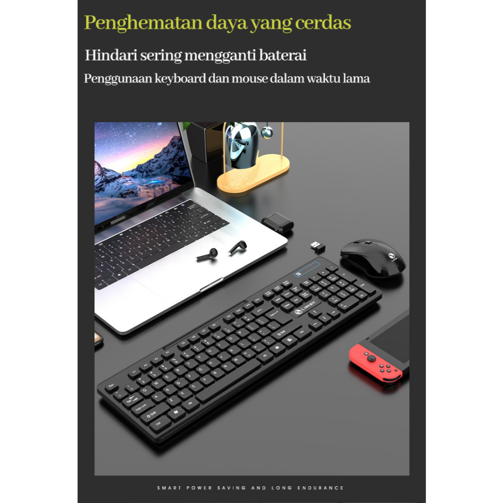 MA Keyboard Portable Wireless Set Combo Keyboard dan Mouse Tanpa Kabel Tipe W100 Original Keyboard untuk PC Desktop