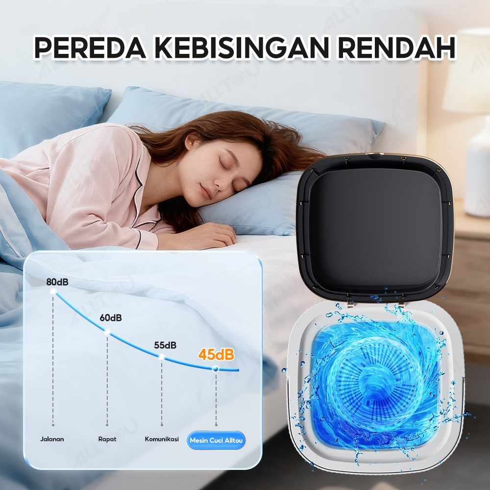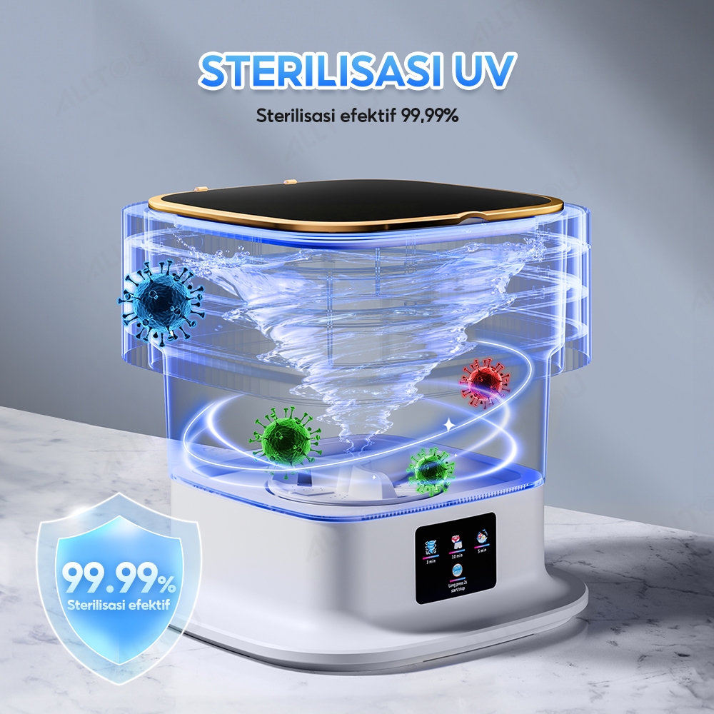 ALLTOU Mesin Cuci Mini Portable 13L Otomatis Mesin Pengering Pakaian Sterilisasi Cahaya Biru