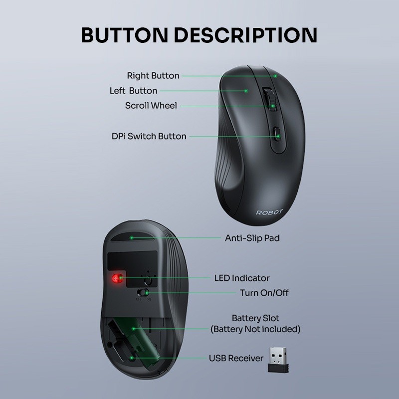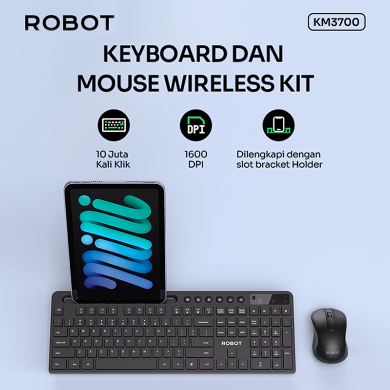 ROBOT KM3700 Keyboard Mouse Set Wireless Dual Mode 2.4G USB Receiver 1600DPI Ergonomic + Slot Holder - Bisa Ganti 3 Device