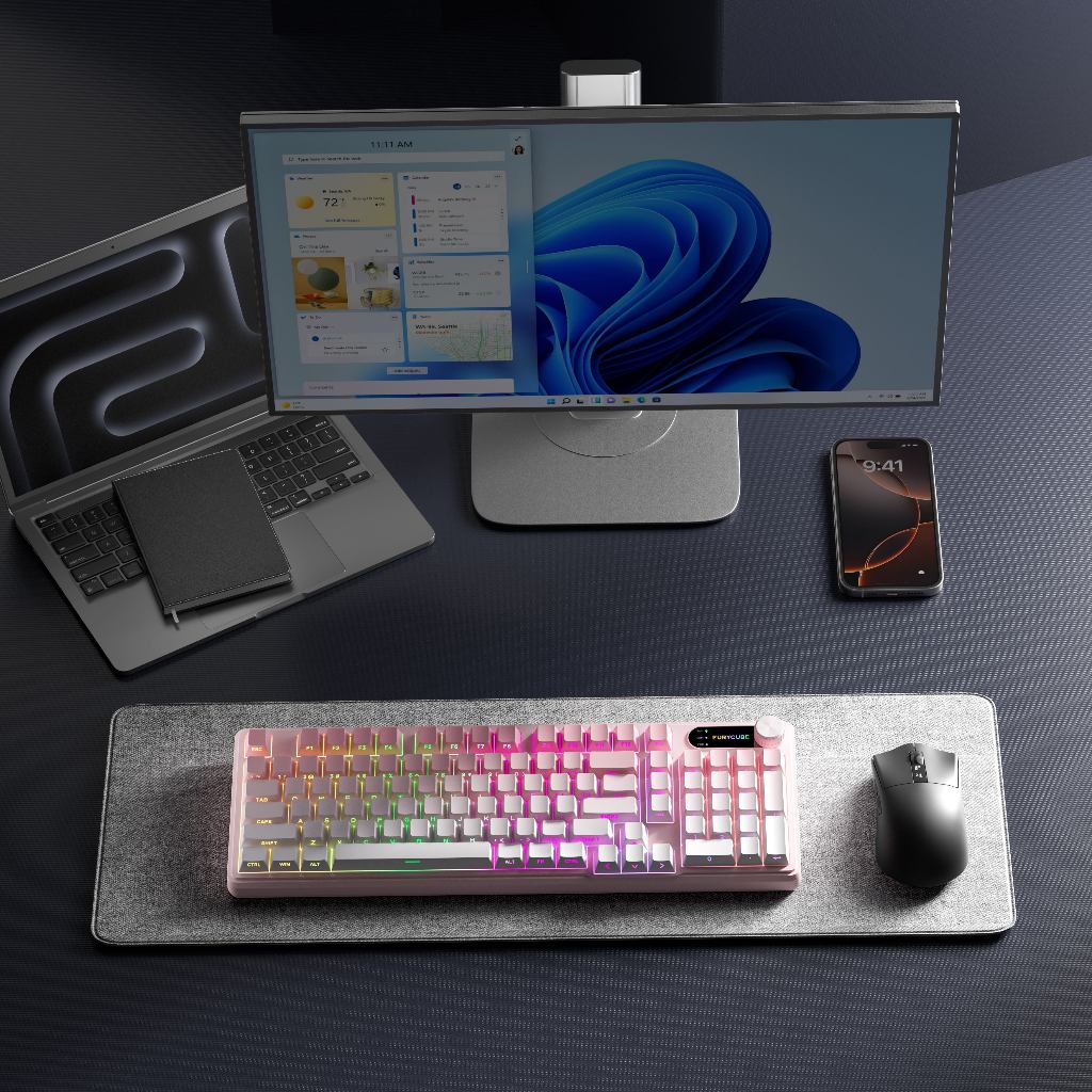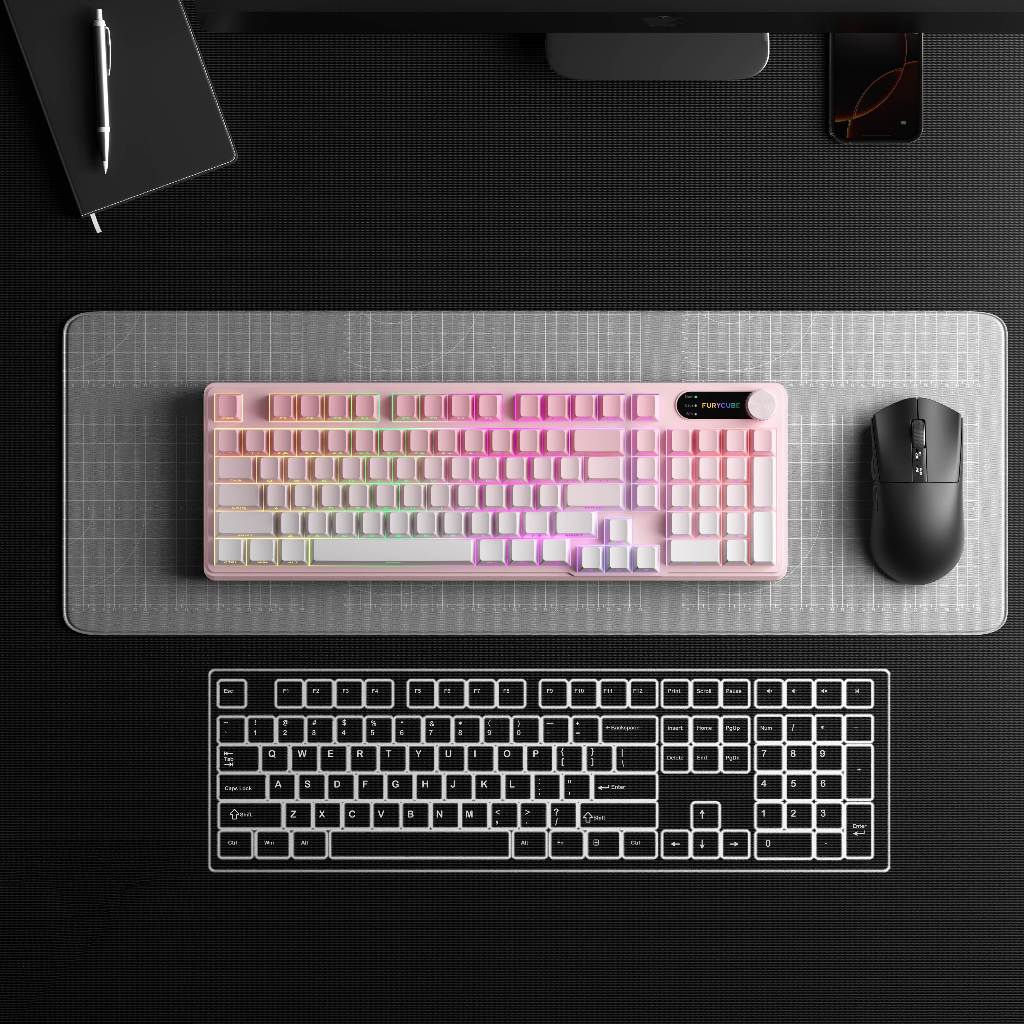 FURYCUBE IP98 Membrane Keyboard Triple Mode Water Proof Knob Control Wireless Gaming Keyboard