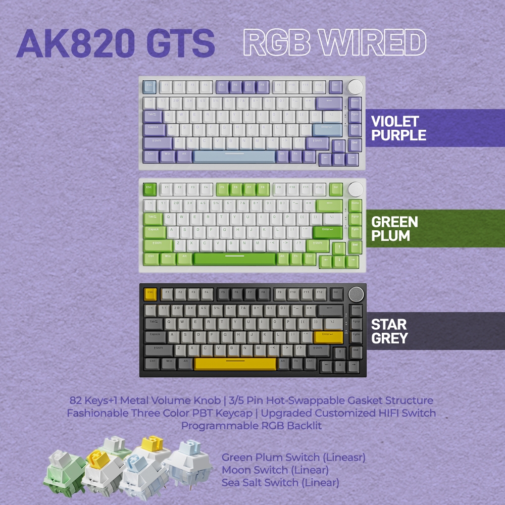 AJAZZ AK820 GTS 75 PERSEN Hotswappable Mechanical Keyboard With Gasket Mount