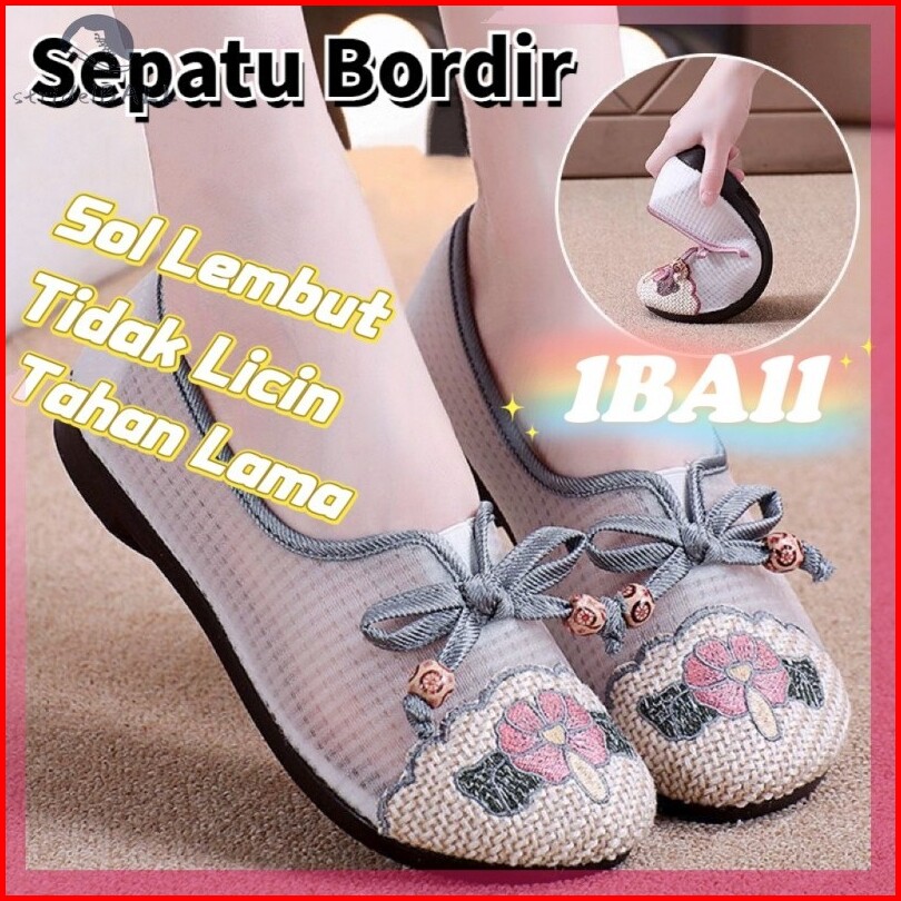 Ready Stock Sepatu Wanita Etnik Bordir - Bahan Mesh Tembus Udara Sol Tebal Nyaman Hf02