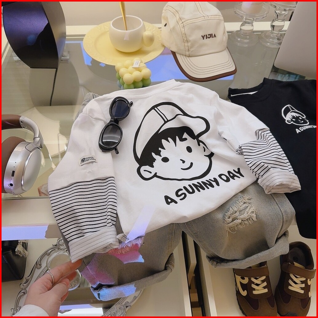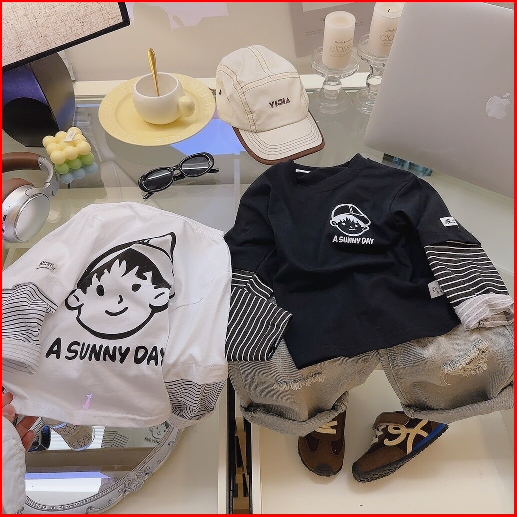 Baju Kaos Anak Cowok Cewek Lengan Panjang Sunny Day Bahan Cotton