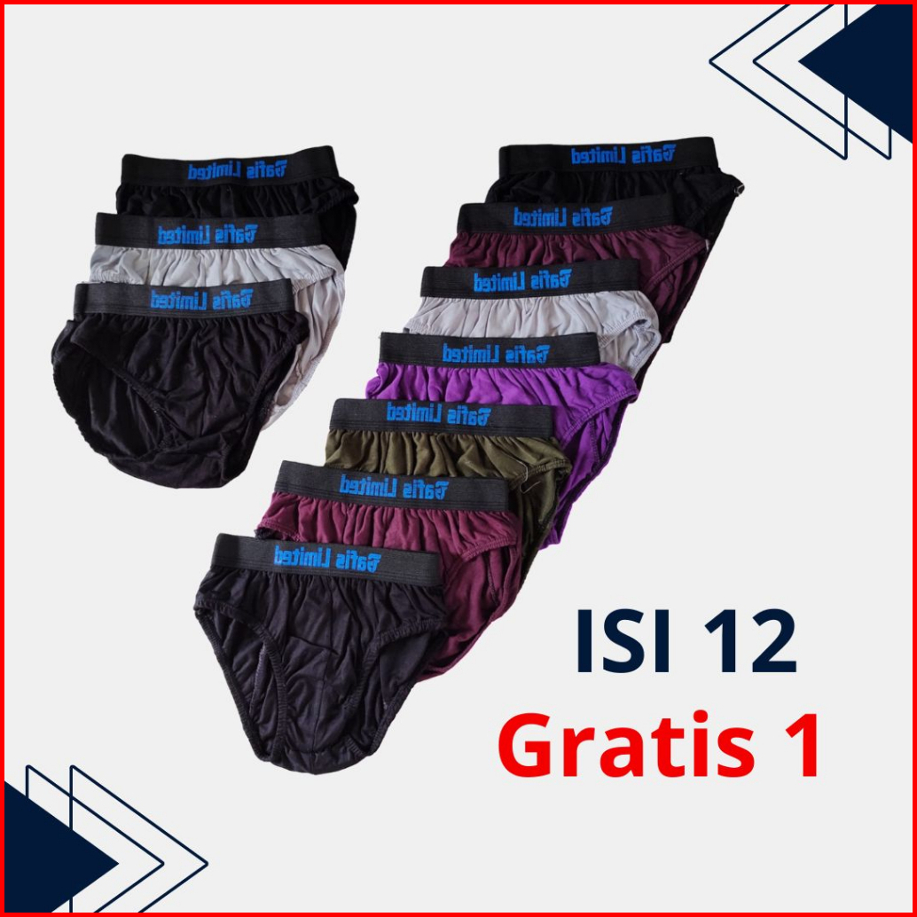 Paket 12 Bonus 1 Pcs Celana Dalam Pria Cd Laki-laki Bahan Katun Adem