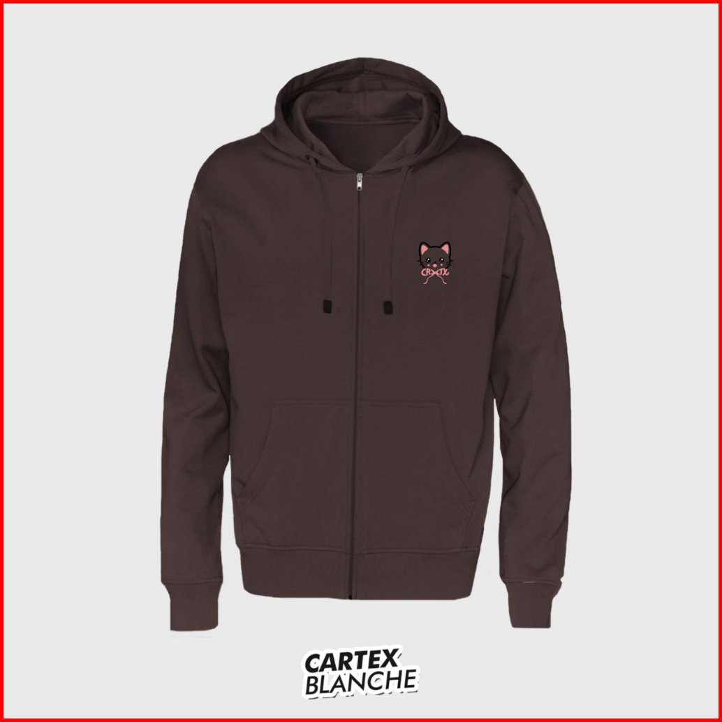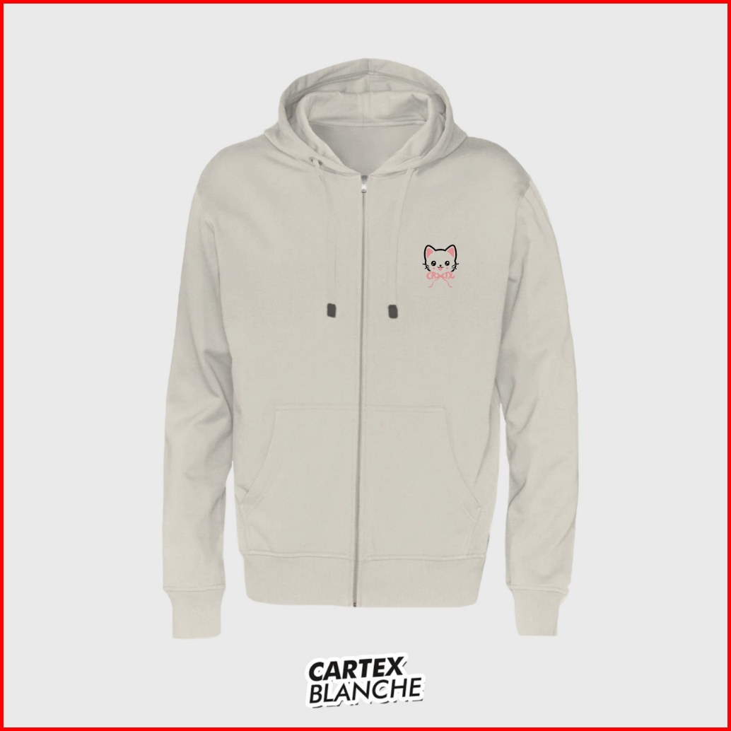 Cartexblanche Ribbon Cat Jaket Hoodie Zipper Bordir Pria Wanita Size M-xxl