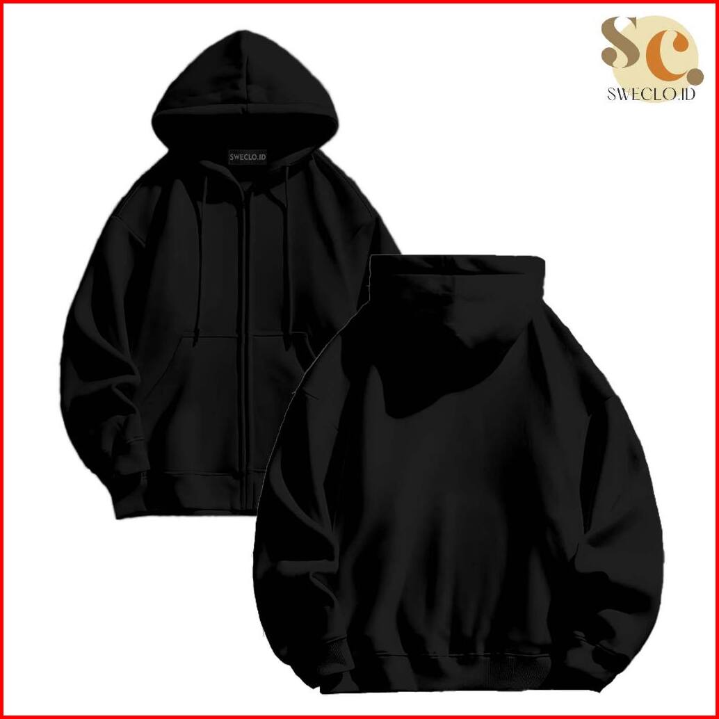 Sweclo.id Hoodie Zipper Jacket Hitam Polos Size M-xxl Pria Dan Wanita