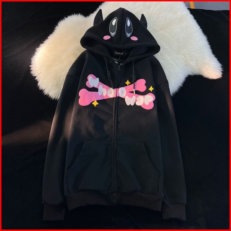 Femes Whoo Wap Jaket Zipper Hoodie Outerwear Wanita Remaja Matt Fleece Sablon Casual Daily