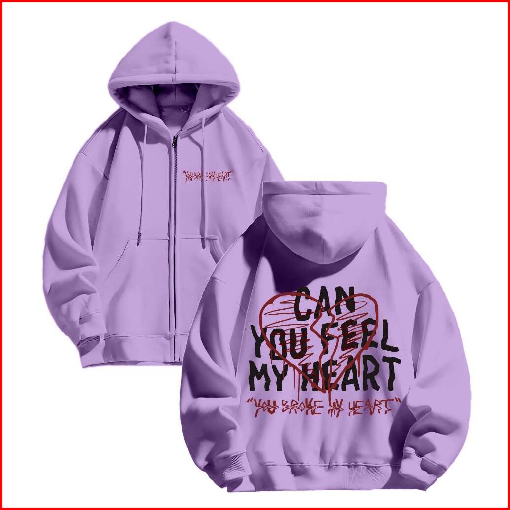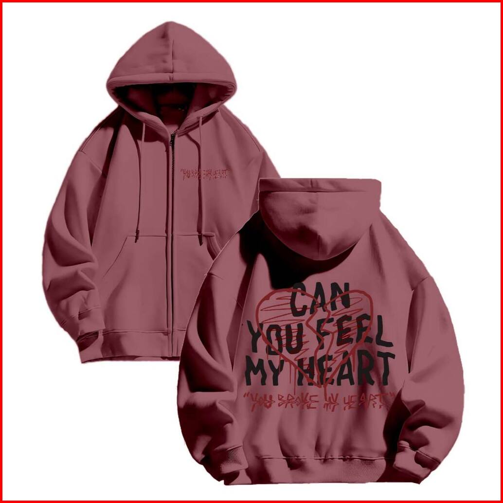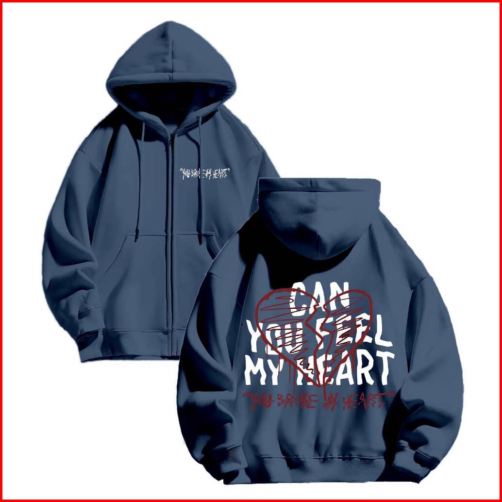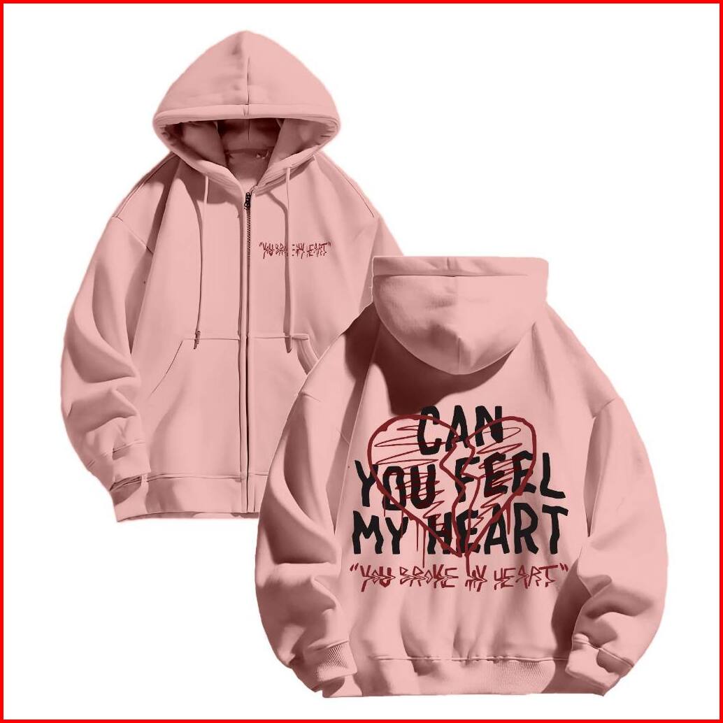 Hoodie Zipper Jaket Sweclo.id Oversize Can You Feel My Heart Sablon M-xxl Pria Wanita 280gsm