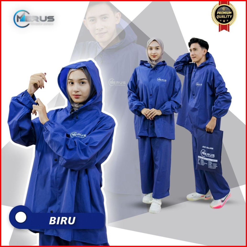 Jas Hujan Setelan Merus Raincoat Pria Wanita Tebal Dan Anti Rembes Pvc 0.25 Celana Full Siler
