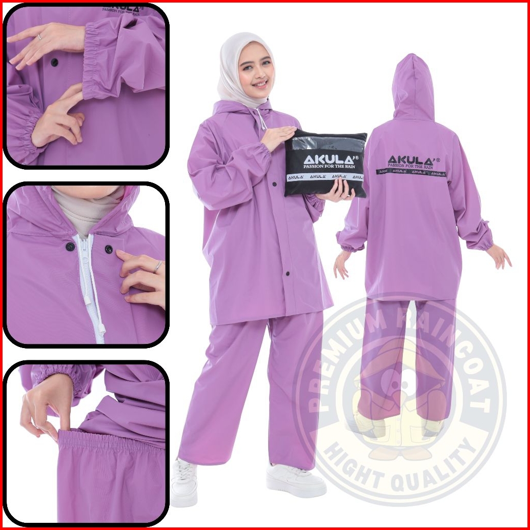 Jas Hujan New Akula Setelan Pria Wanita Bahan Tebal Kuat Elastis Anti Rembes
