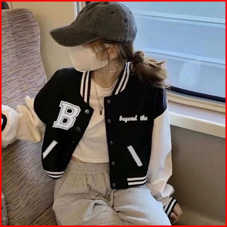 Vallina - B Beyond The Baseball Croped Jaket Varsity Basic Korean Style Remaja Wanita Premium
