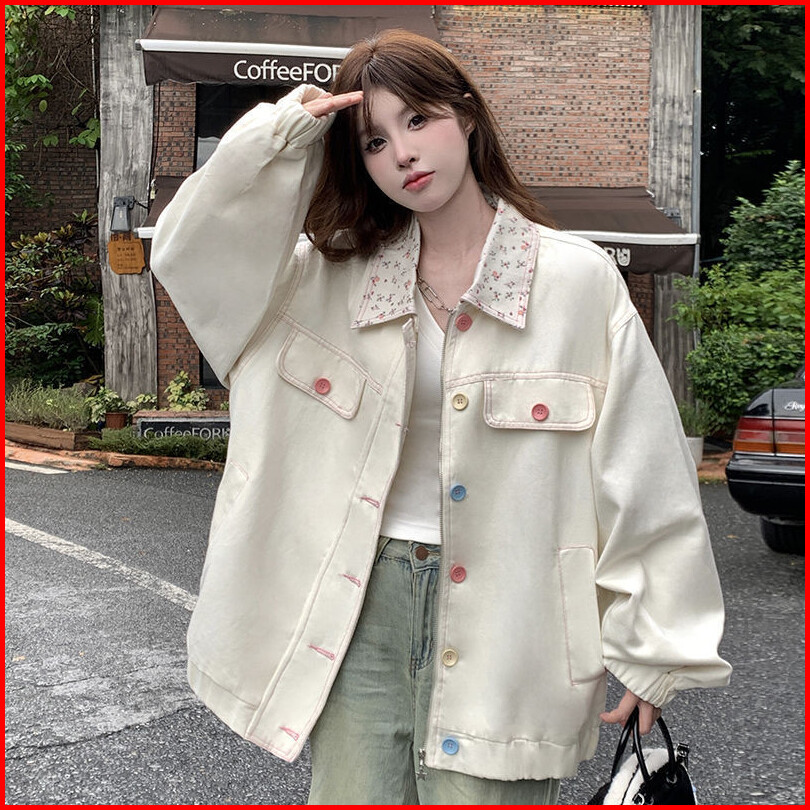Yuruma Mantel Longgar Kerah Baru Gaya Korea Atasan Jaket Bunga Manis Gaya Kuliah