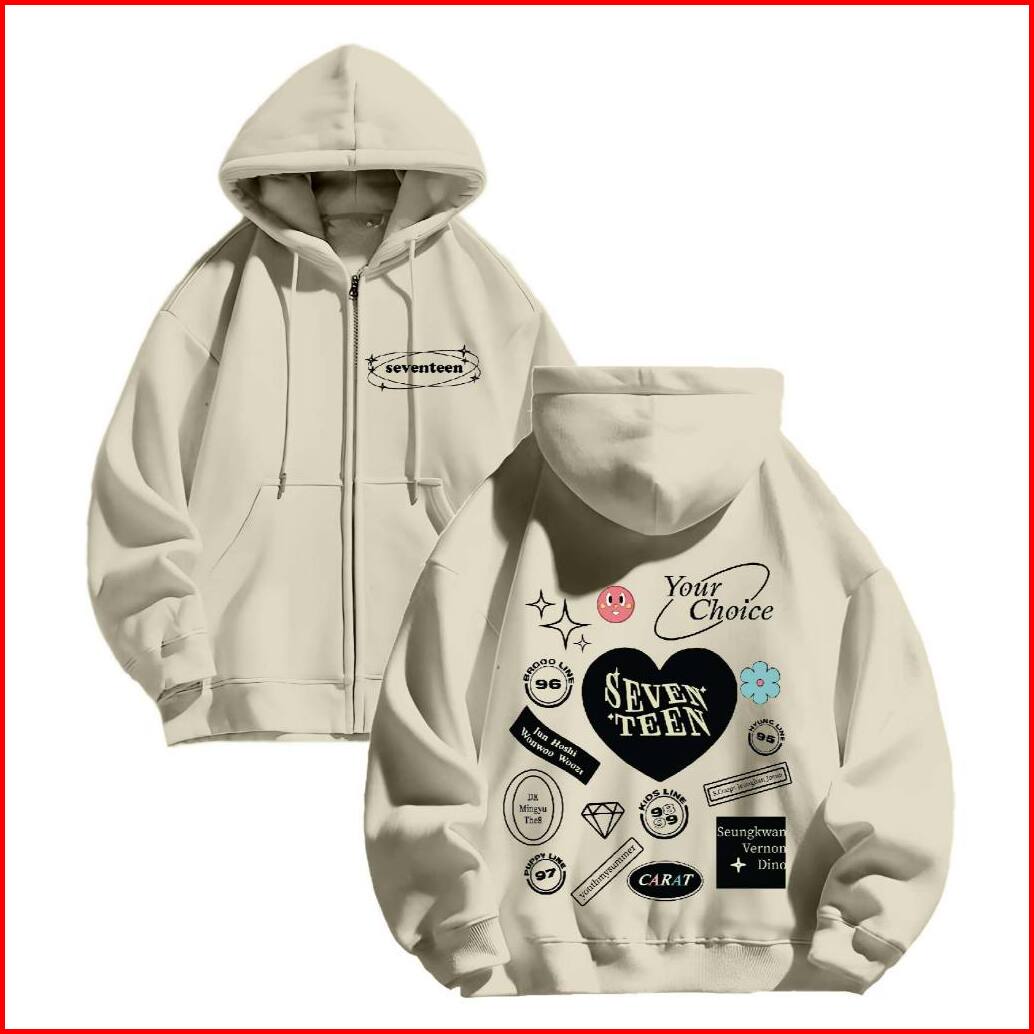 Hoodie Jaket Zipper Jyb Oversize Carat Seventeen Sablon Size M-xxl Pria Wanita