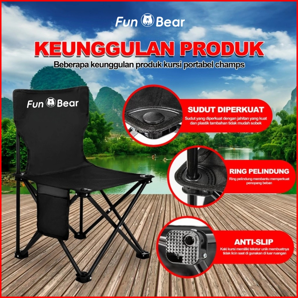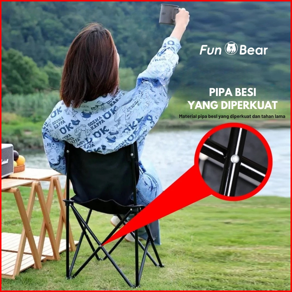Kursi Lipat Portabel Fun Bear Kursi Camping Piknik Kuat Dengan Kantong Samping Desain Ringan Dan Mudah Dibawa.