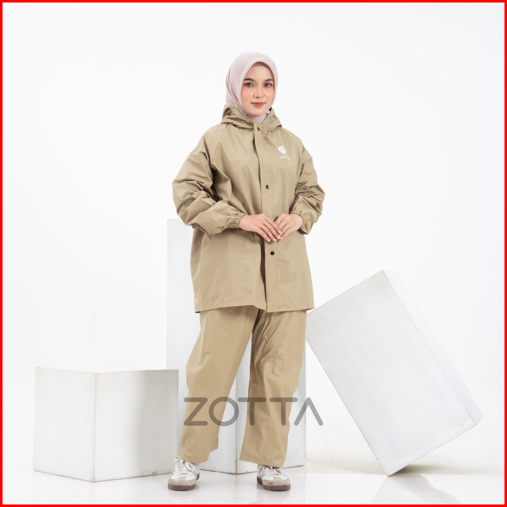 Zotta Jas Hujan Wanita Dewasa Stelan Atasan Celana Raincoat Bahan Pvc