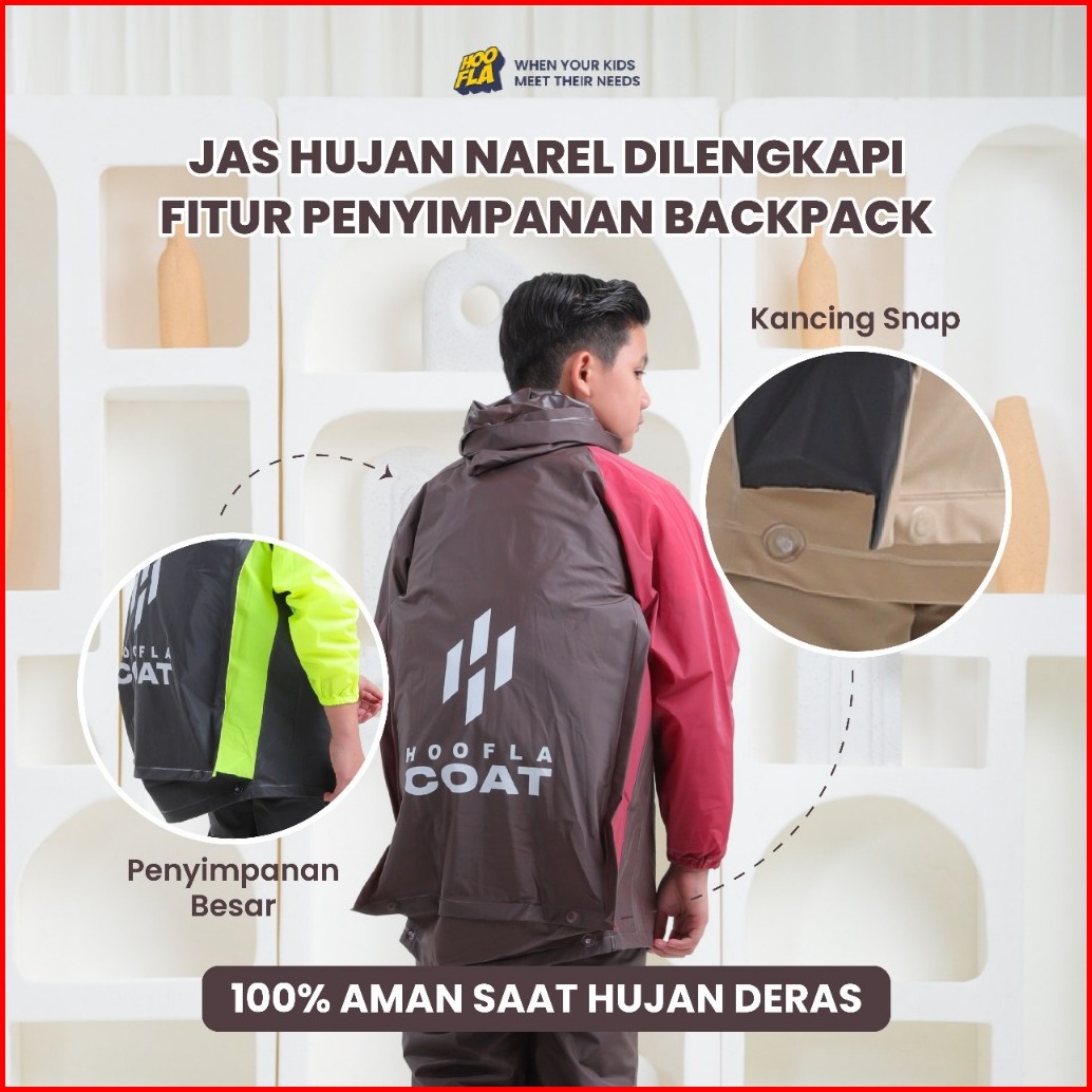 Hoofla Jas Hujan Backpack Laki Laki Pria Dewasa Setelan Bahan Tebal Premium Anti Bocor Full Press Terbaik Narel Raincoat
