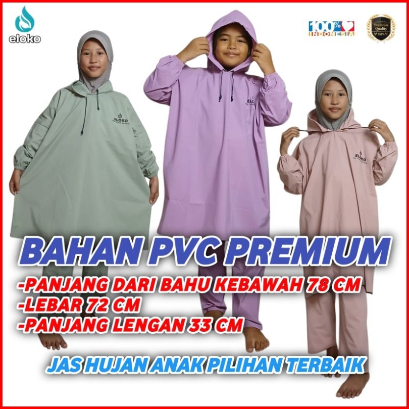Jas Hujan Anak Eloko Raincoat Mantel Anak Perempuan Laki Laki Jas Hujan Anak Karakter Bahan Elastis Anti Rembes