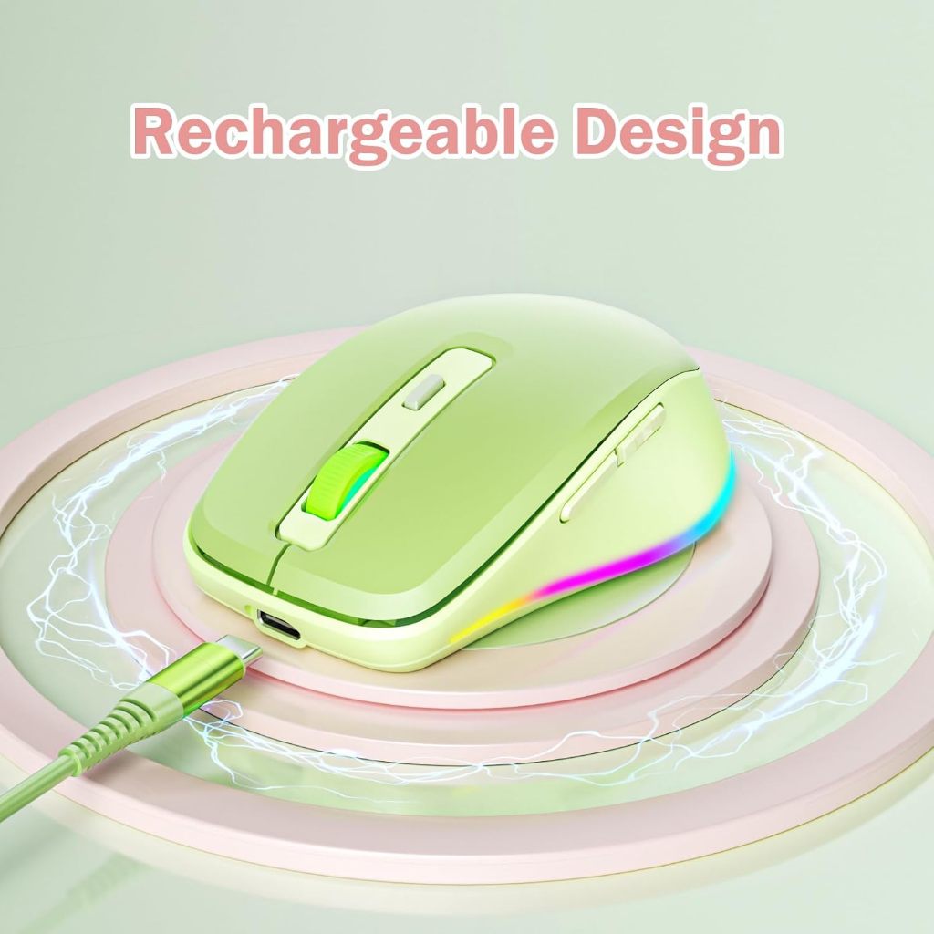 SEENDA MOU160 Mouse Wireless Type C + 2.4G USB Receiver Silent Click Lampu RGB Backlight Rechargeable Green - Garansi 2 Tahun