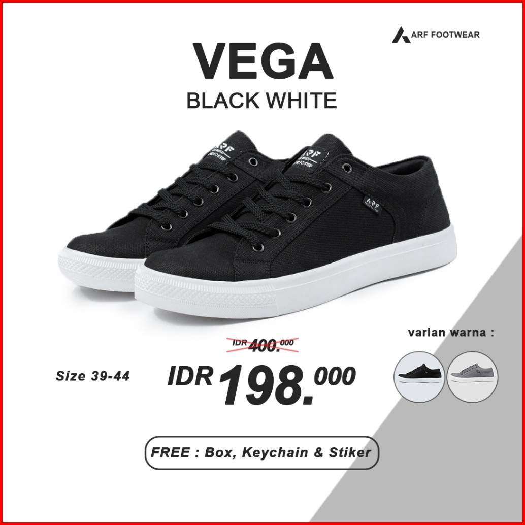 Arf Vega Black Sepatu Sneakers Casual Hitam Pria Wanita Distro Kasual