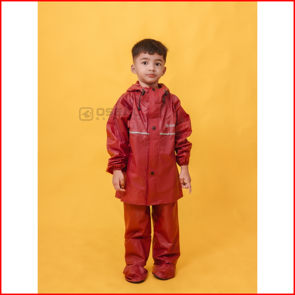 Oseal Jas Hujan Anak Laki Laki Perempuan Full Seal Shinekid Merah
