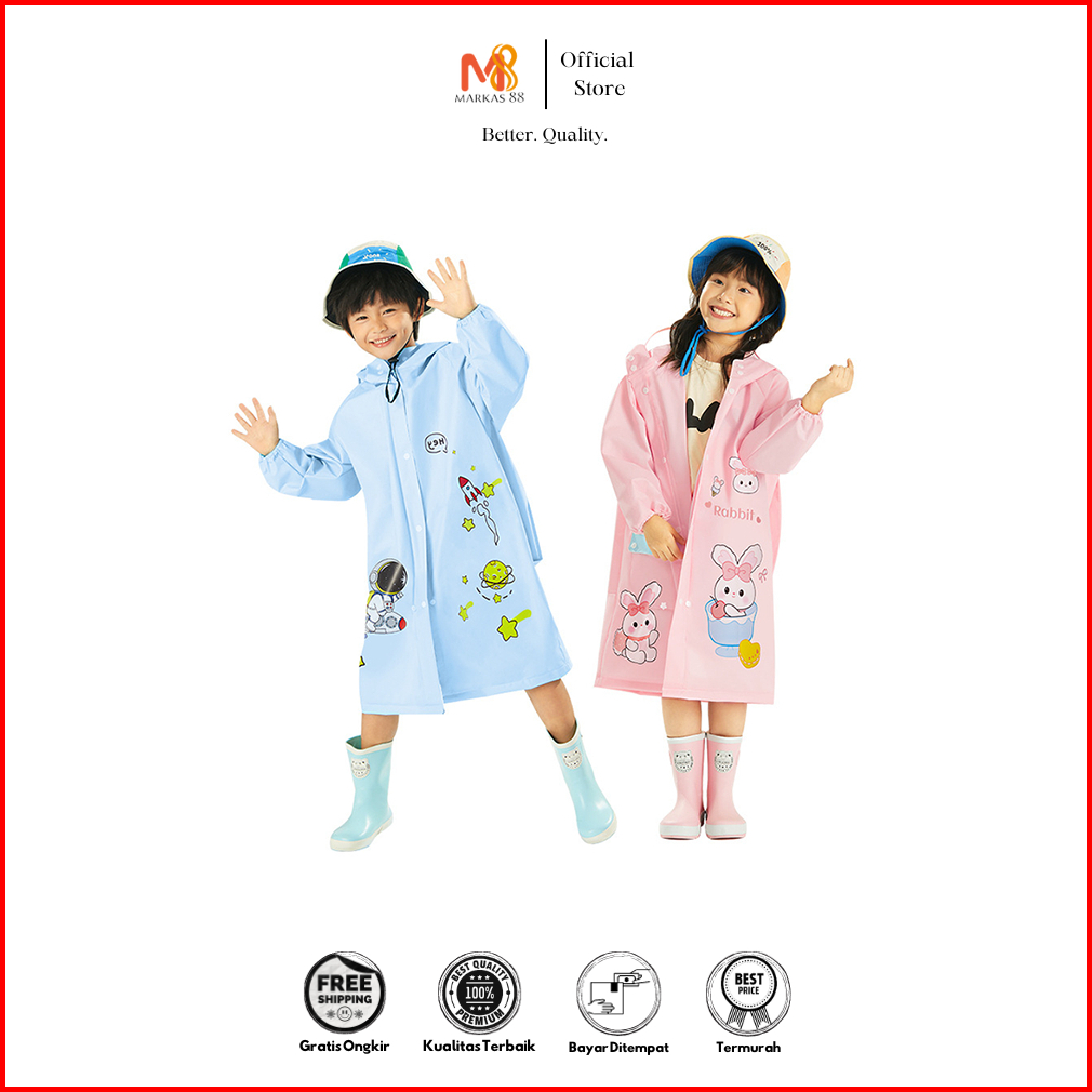 Markas88 Jas Hujan Anak Perempuan Laki Laki Anti Rembes Mantel Anak Kids Raincoat Bahan Eva Tebal