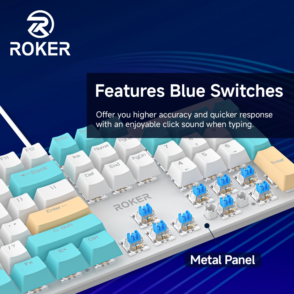 ROKER Keyboard Gaming Mechanical Roker Rkey 104 blue switch red switch