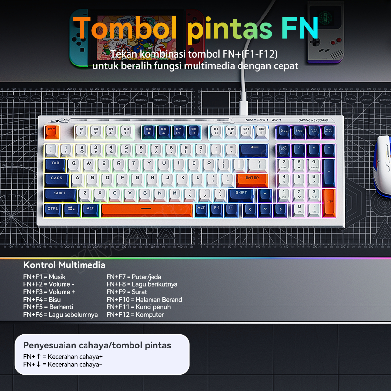 YLV Keyboard Gaming Wireless Mouse RGB for PC Laptop Hot-Swappable 98 Keys Ergonomic Design