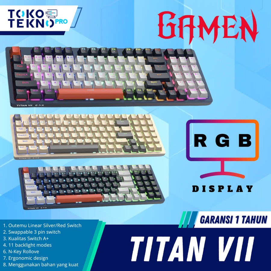 Gamen Titan 7 / VII Keyboard Gaming Mechanical Linear Switch 94 Keys RGB Light