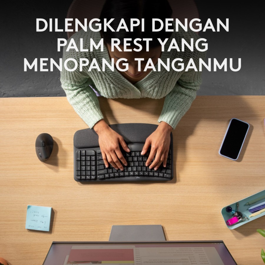 Logitech Keyboard Wave Keys Ergonomic Wireless Bluetooth Garansi Resmi