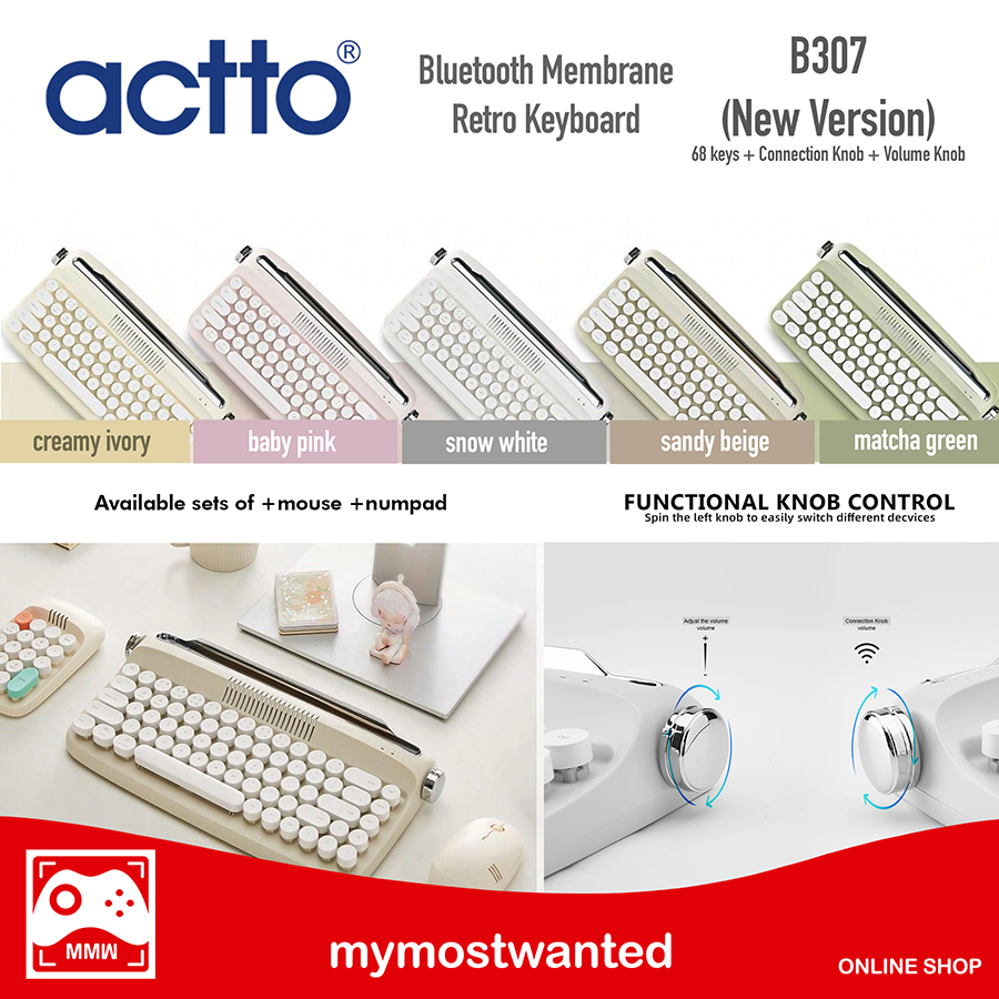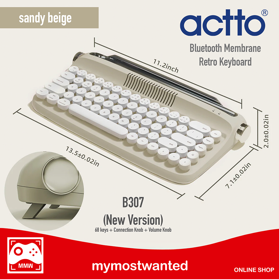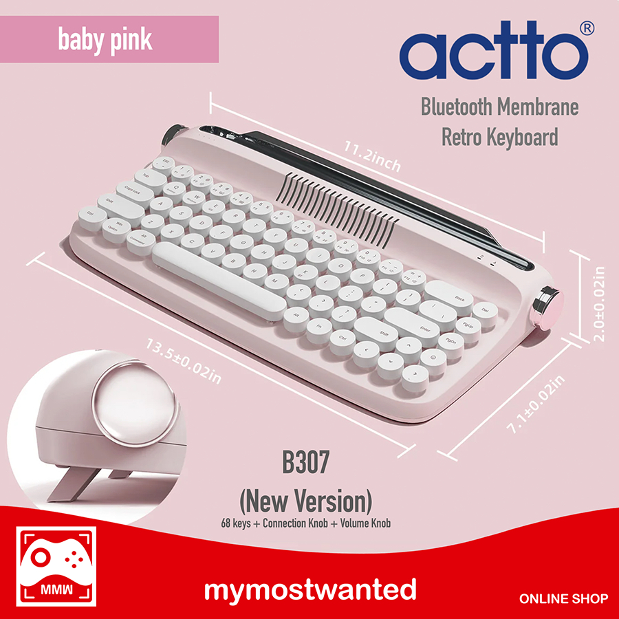 ACTTO Bluetooth Membrane keyboard B307 retro typewriter PINK IVORY BEIGE MATCHA GREEN WHITE