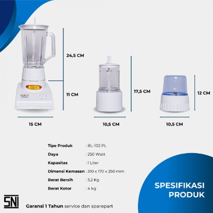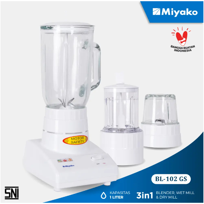 MIYAKO Blender 1 Liter Low Watt (BL-102 PL PLASTIK) & (BL-102 GS KACA) Garansi Resmi