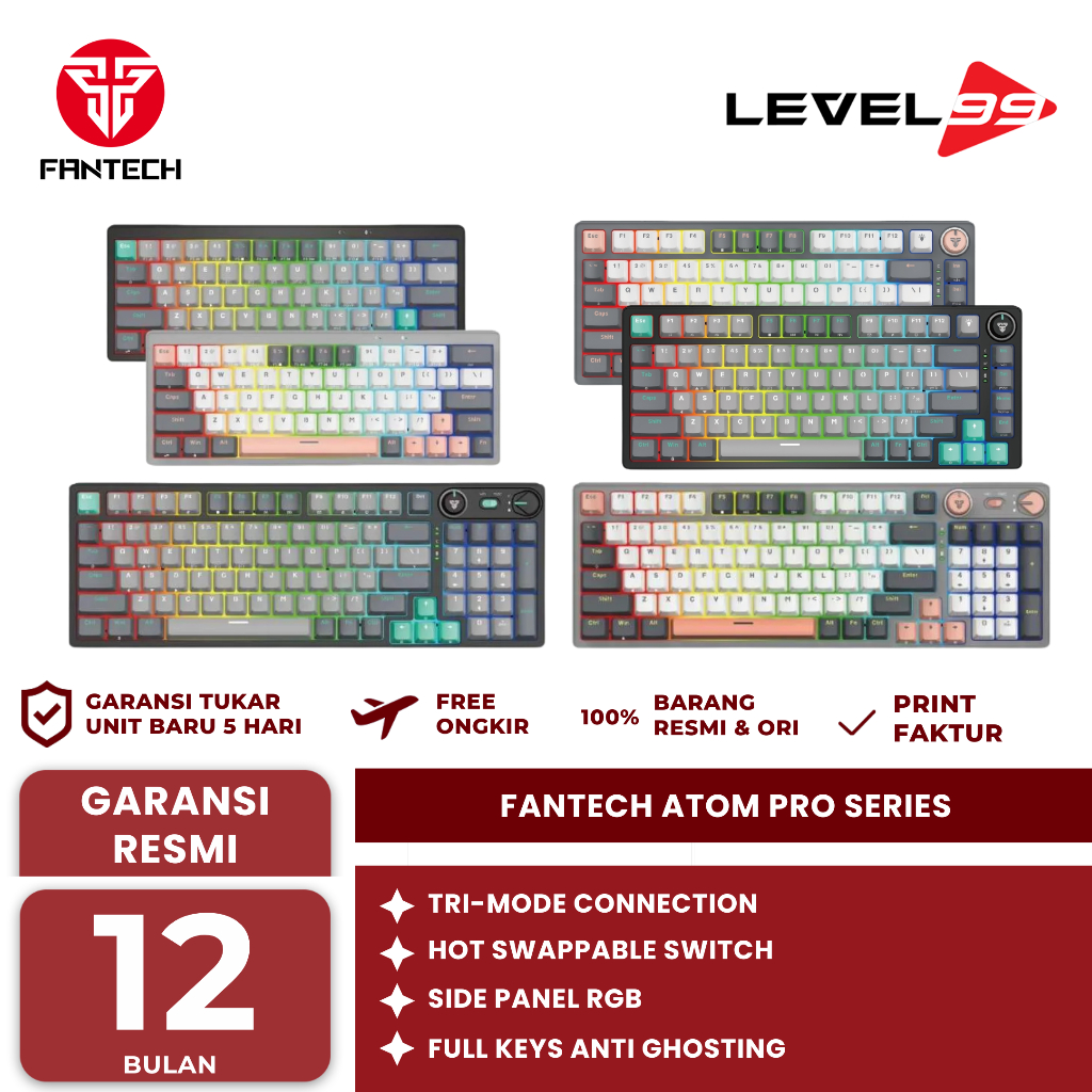 Fantech Atom Pro Series Wireless Keyboard Mechanical Gaming Hotswap - MK912 / MK913 / MK914