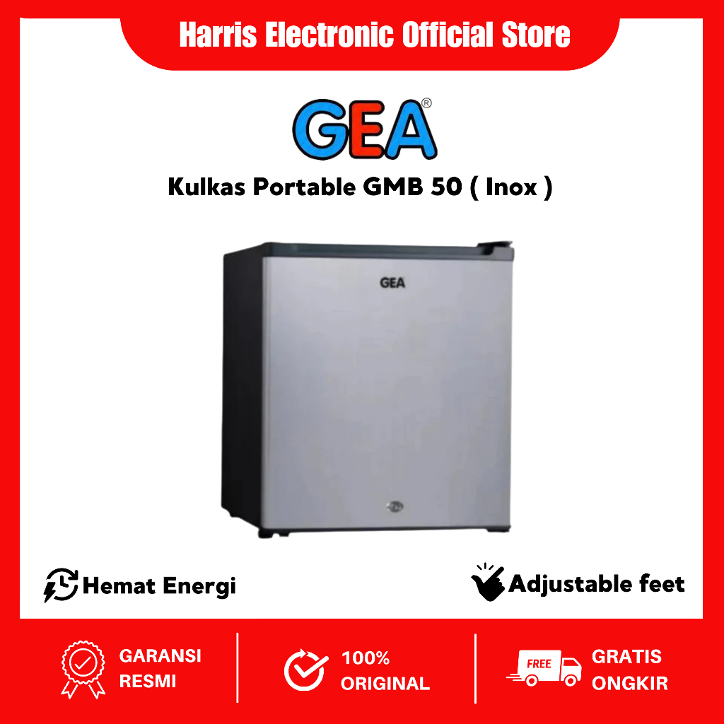 GEA Kulkas Mini Bar GMB-50 / GMB50 black matt grey / GMB 50 Portable Rak Besi 48L / GMB-50INOX / GMB-50-INOX / KULKAS MI