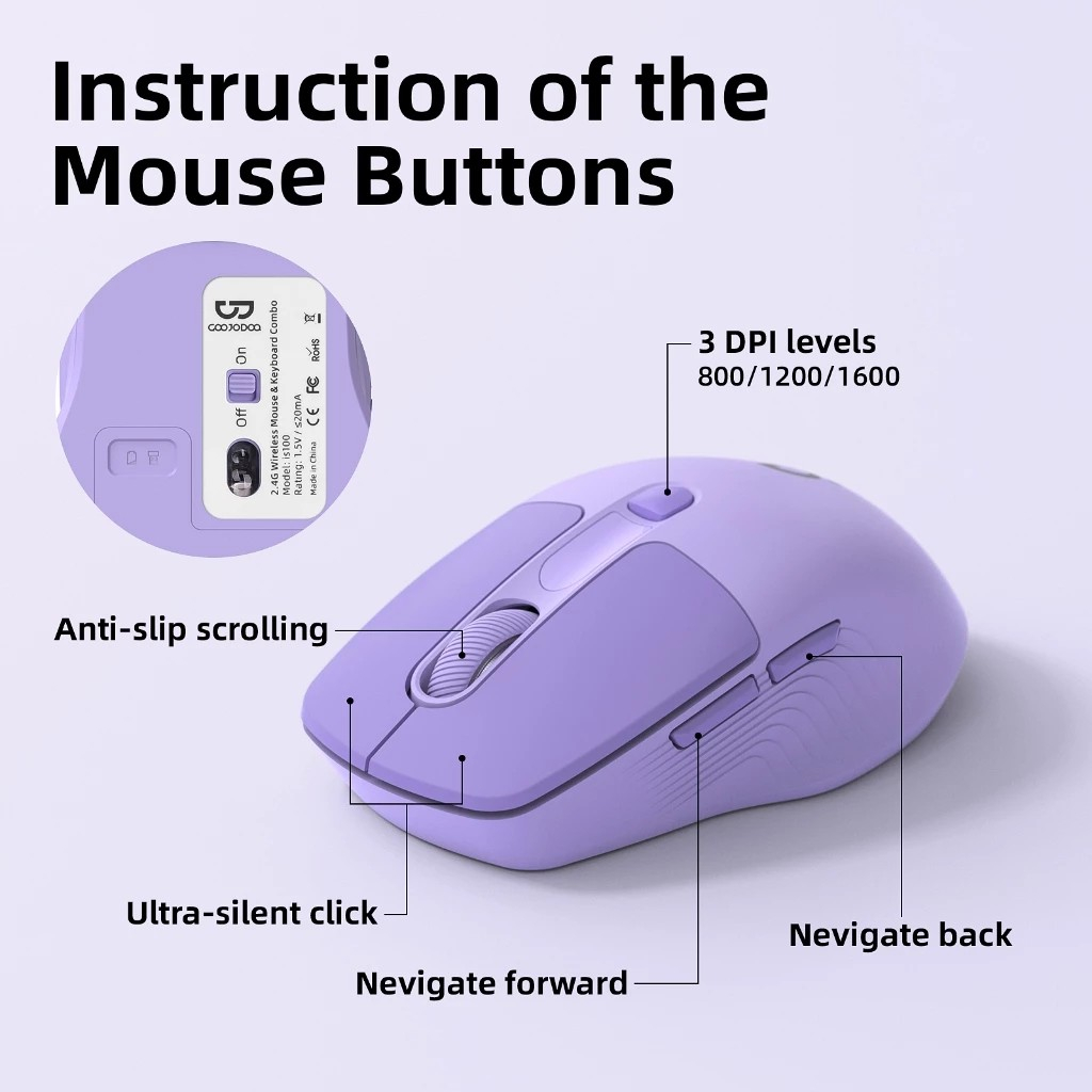 GOOJODOQ 2.4G Wireless Keyboard Mouse Set 104 key 2.4G papan ketik senyap For Notebook Laptop Desktop PC