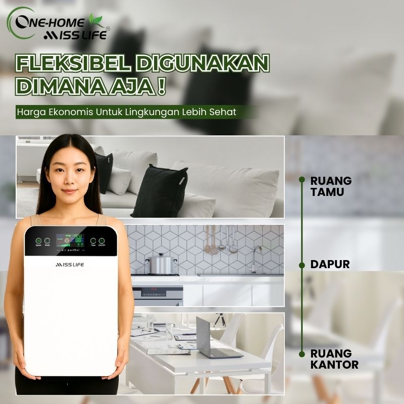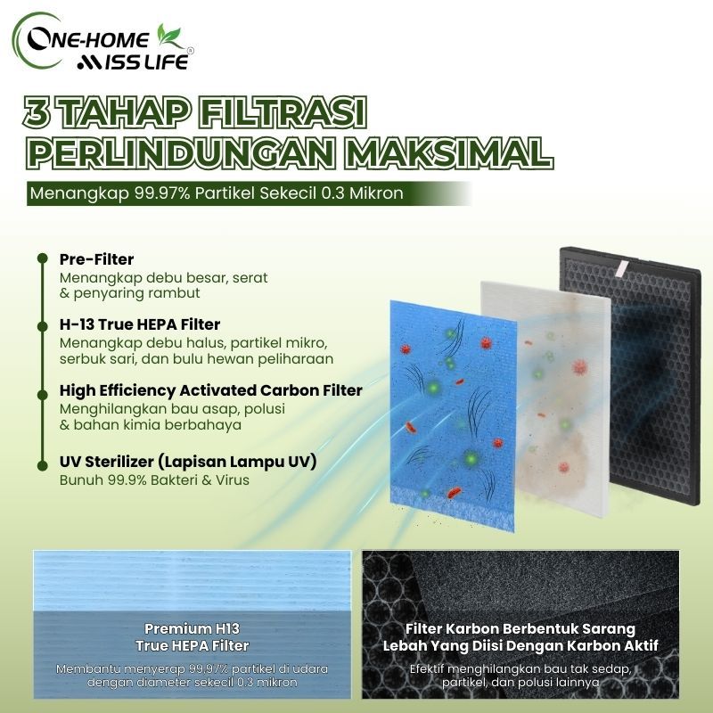 MISS LIFE Air Purifier K5, Pembersih Udara Ruangan dengan Filter HEPA, Ion Negatif, dan Sterilisasi UV, Anti Virus