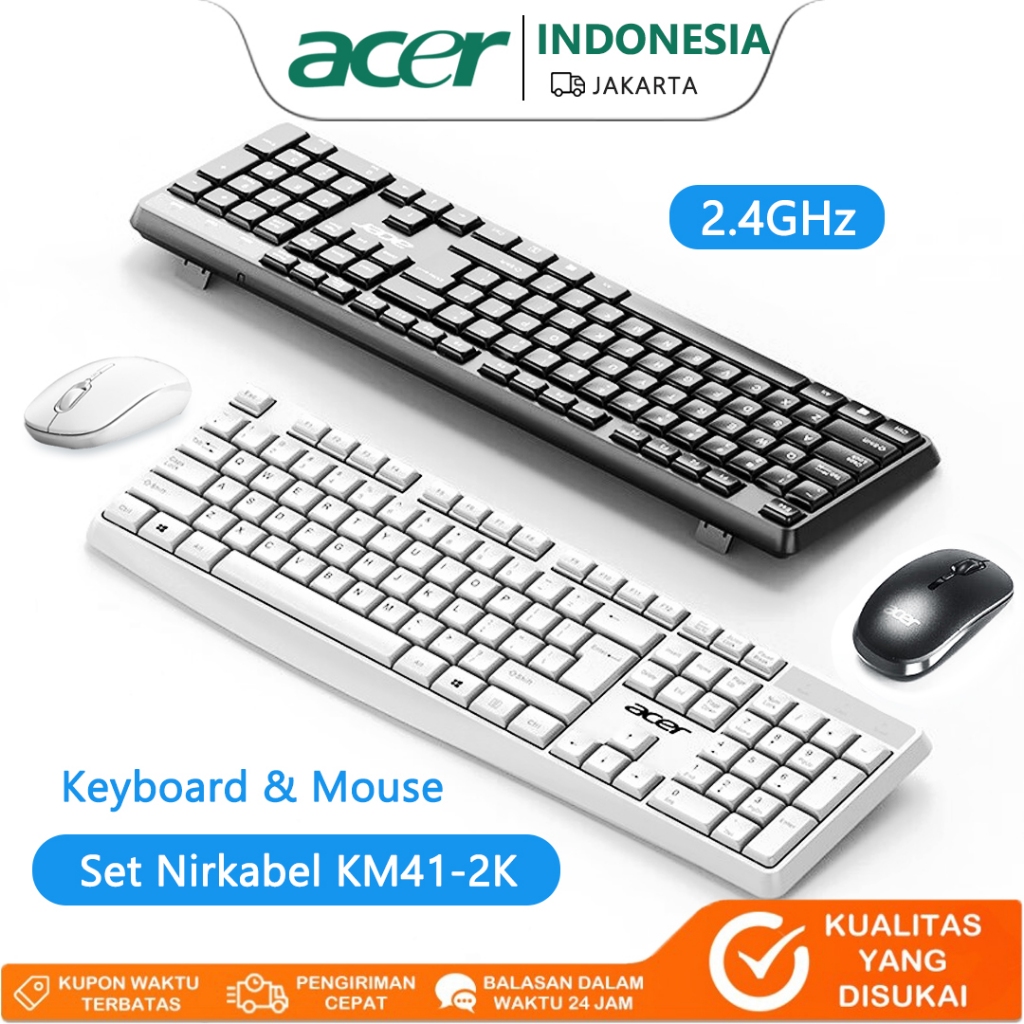 Acer KM41-2K Wireless Keyboard & Mouse Set - Slim, Ergonomis, Nirkabel 2.4G, Tahan Air