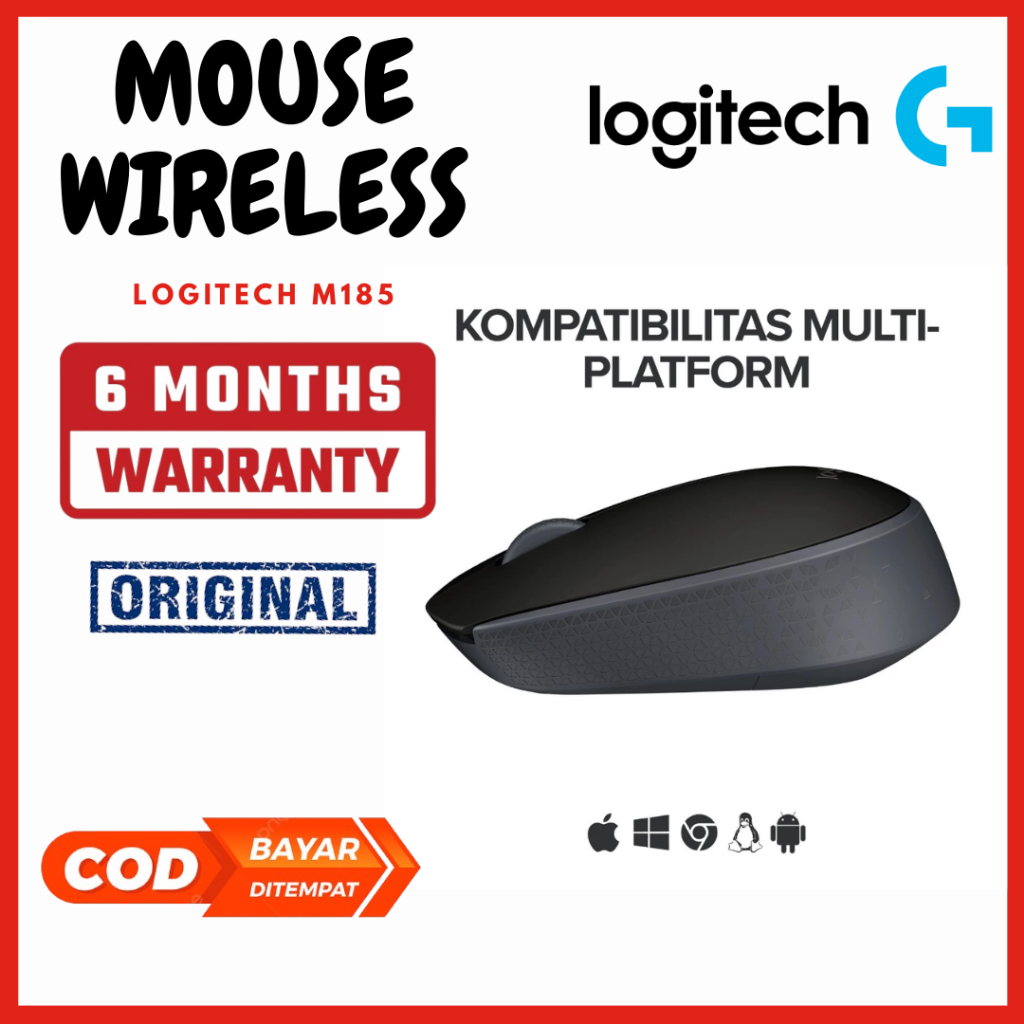 [ Garansi 6 Bulan Tukar Baru ] Mouse Wireless Logitech M185 0riginal 2.4 GHz 10 m
