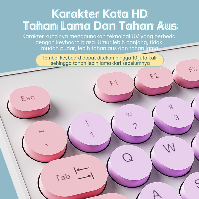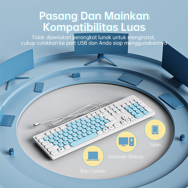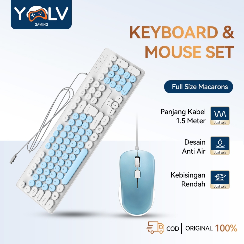 YLV Keyboard & Mouse Gaming Set Kabel USB 104 Keys Full Size Tuts Bulat Macarons for PC Laptop