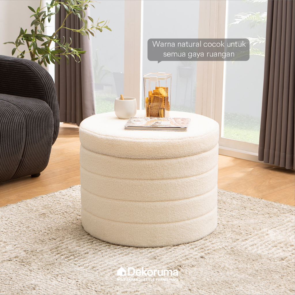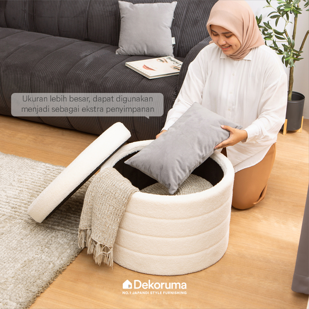 Kursi Stool Kain Minimalis dengan Storage - Krem