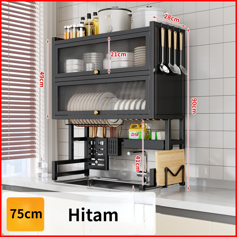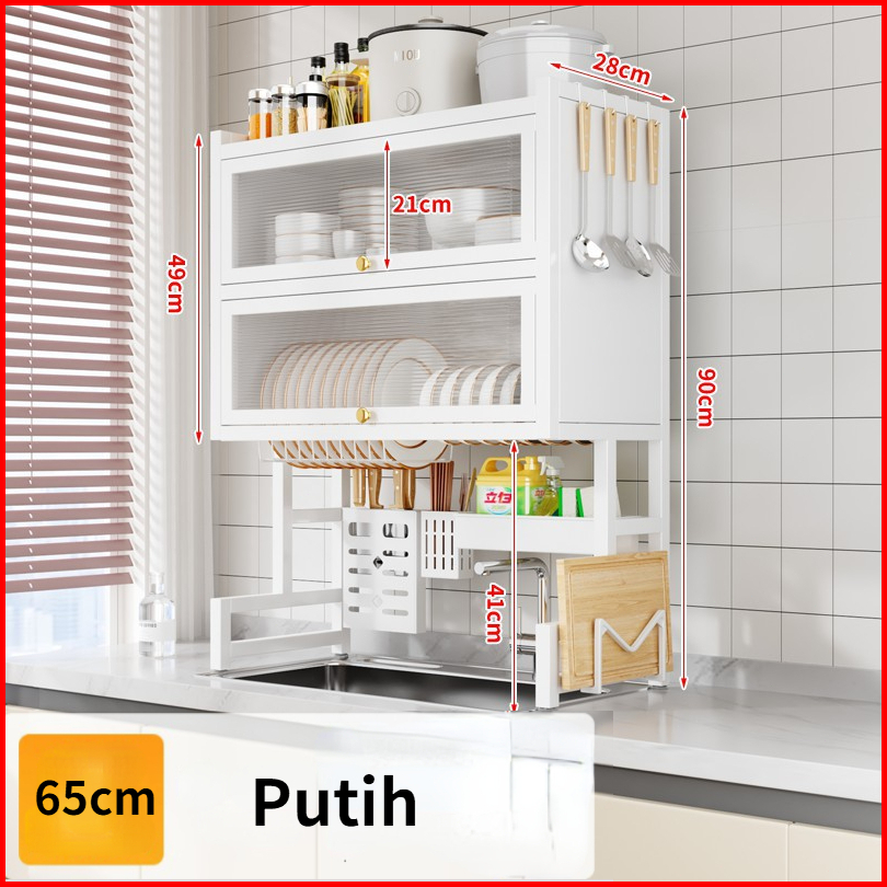 Rak Piring Wastafel 2 Lapis Anti Debu Dengan Penutup Tatakan Anti Bocor F62