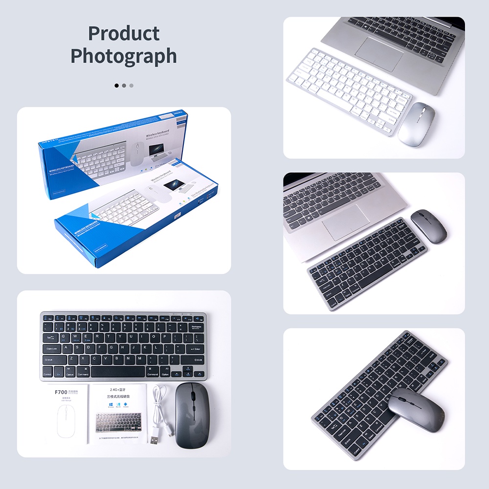 CIJI Set Keyboard Mouse Wireless+Bluetooth 3 Device Slim Ultrathin