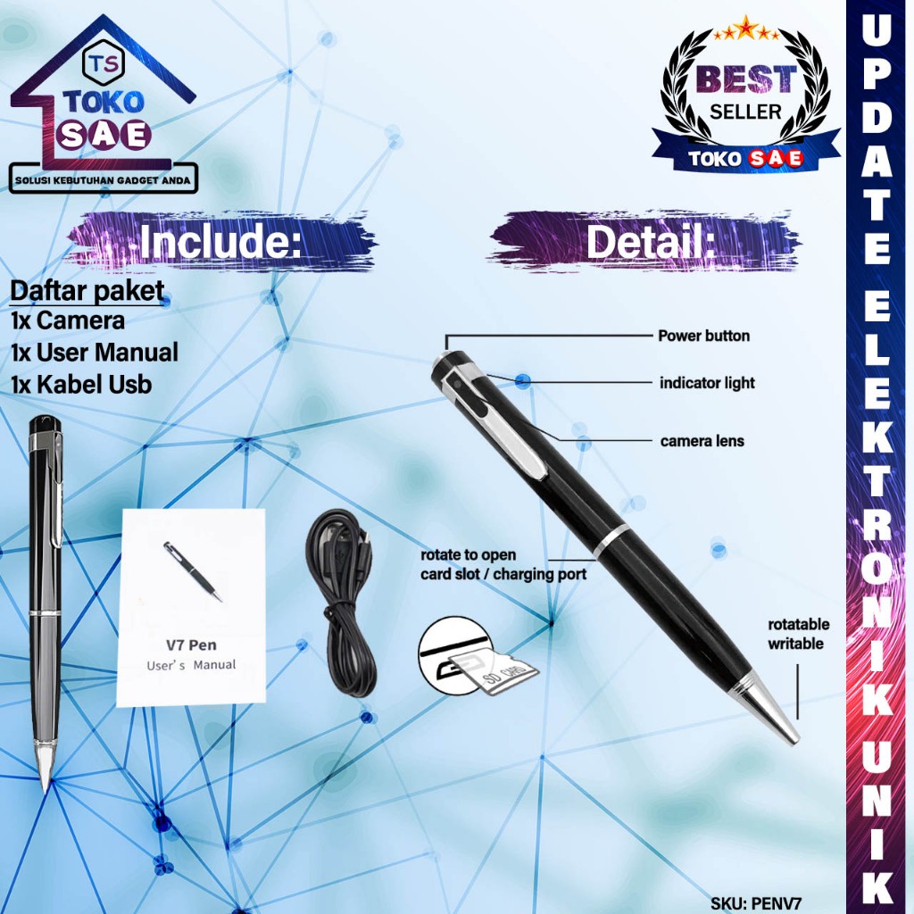 Pen V7 HD 1080P Kamera Mini Pengintai Tersembunyi Model Pulpen Seri V7 Resolusi Tinggi Full HD 1080P Camera Mini Keamana