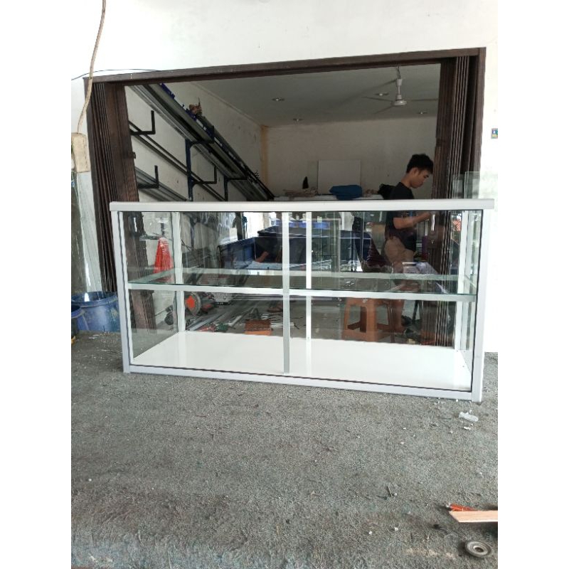 Etalase Warung Nasi Alumunium 120cm Kaca Bening