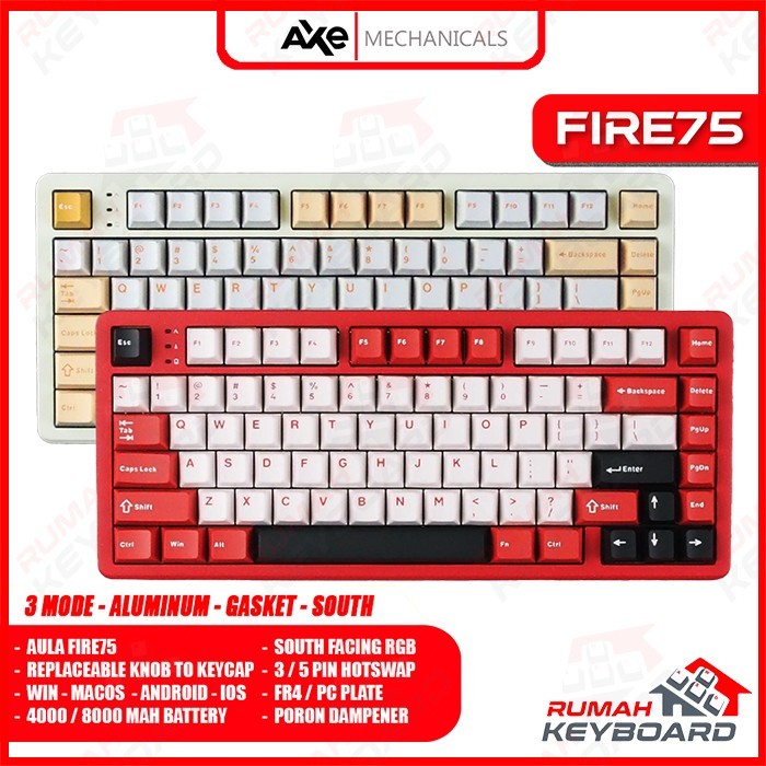 AULA FIRE75 - 75 PERSEN - 3 MODE - Aluminum - South RGB - Special Edition - Mechanical Keyboard
