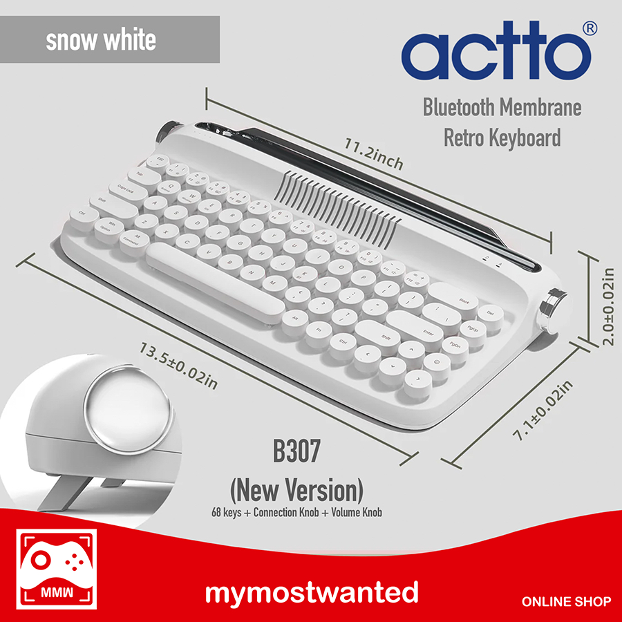 ACTTO Bluetooth Membrane keyboard B307 retro typewriter PINK IVORY BEIGE MATCHA GREEN WHITE