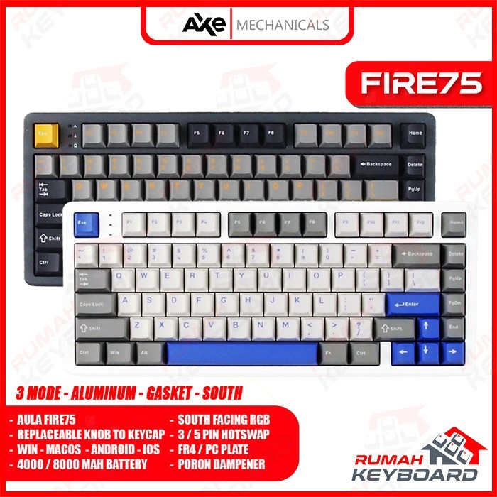 AULA FIRE75 - 75 PERSEN - 3 MODE - Aluminum - South RGB - Special Edition - Mechanical Keyboard
