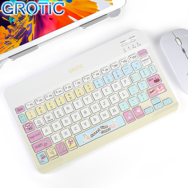 GROTIC Keyboard Set Mouse Bluetooth Wireless 10 Inch Colorful Theme Keyboard For iPad Laptop Android iPhone