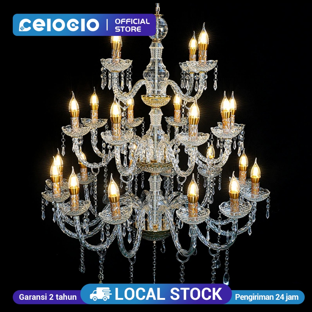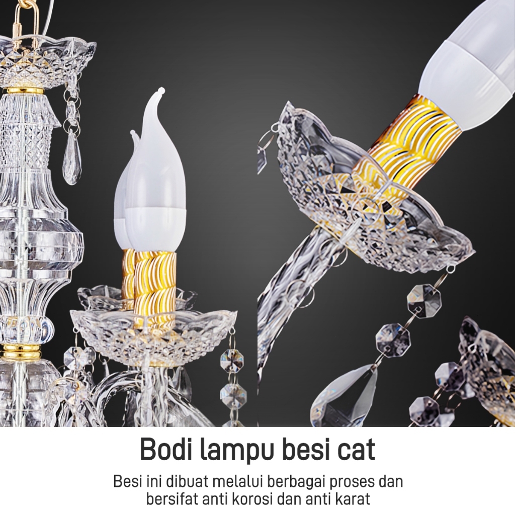 CELOGLO Lampu Gantung Kristal Akrilik Isi 6/8/8+4 Bohlam Kirim Bola Lampu lampu kristal rU 4 N G tamu mewah