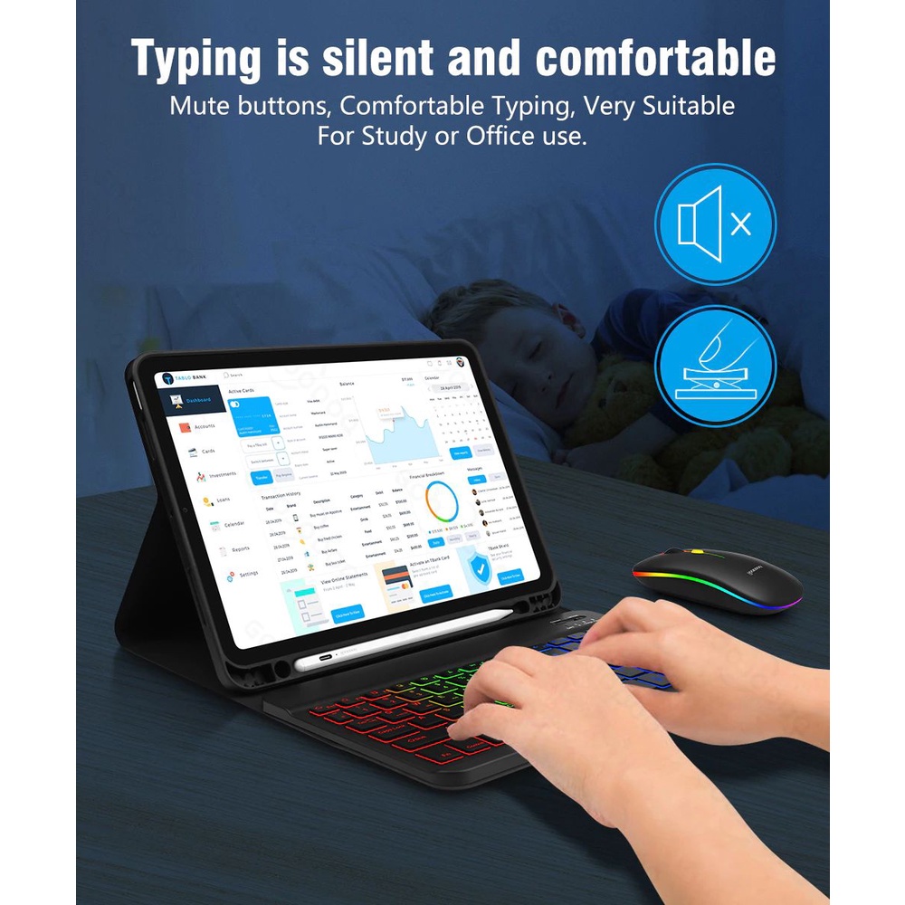 Goojodoq For iPad Case bluetooth Keyboard and Mouse Set, rainbow color, case for iPad Air 4, for iPad pro 11, 7/8/9th gen 10.2, 2021,for iPad mini6